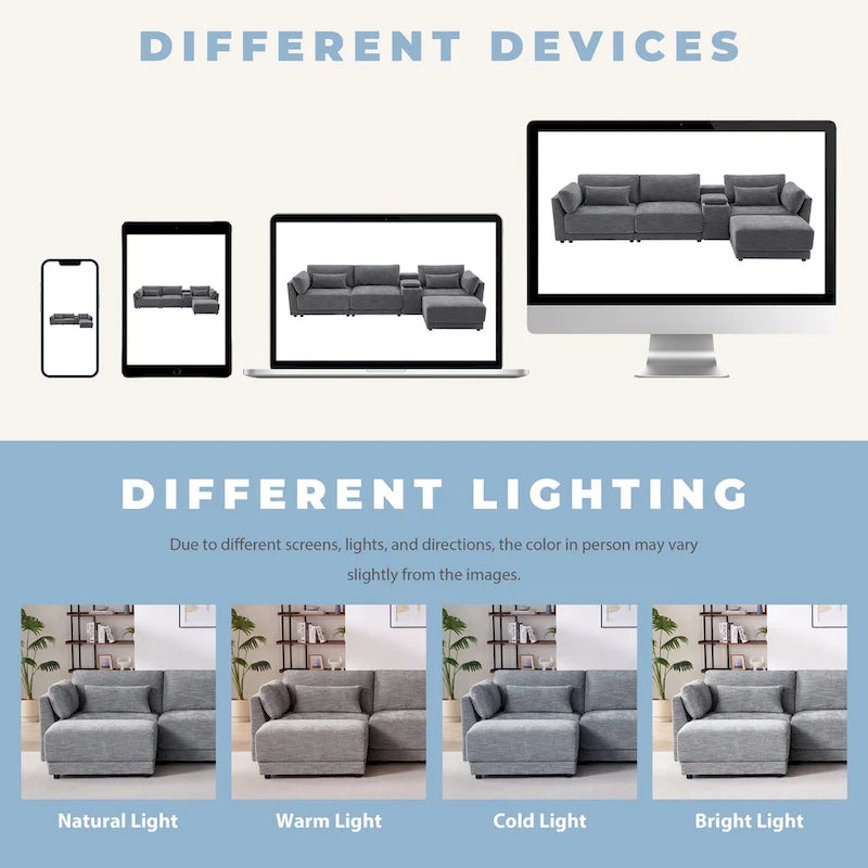 - Movable Ottoman & Reversible Design: The versatile ottoman can be used as a footrest, extra seating, or a small table, while the reversible console allows you to customize the sofa layout to fit your space.