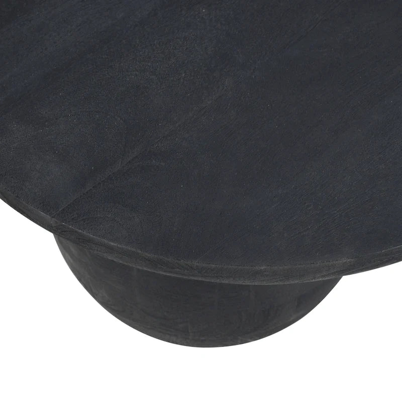 Whether you are creating a monochromatic palette or need a coffee table with ample surface area for entertaining guests, this artisan crafted Uri coffee table is sure to meet your needs. Crafted from solid mango wood, this piece features a warm, sandblasted finish that enhances the wood's natural figure. The oblong top provides ample surface area for entertaining guests or displaying your favorite decor pieces. It sits upon a finely crafted spherical and triangular block base to turn the coffee table into a work of art. This striking base not only provides stability but also adds a modern, sculptural element to the design. Whether you're sipping coffee, browsing through photo albums, or showcasing your favorite decor, this coffee table is sure to complement your space and meet all your functional needs.