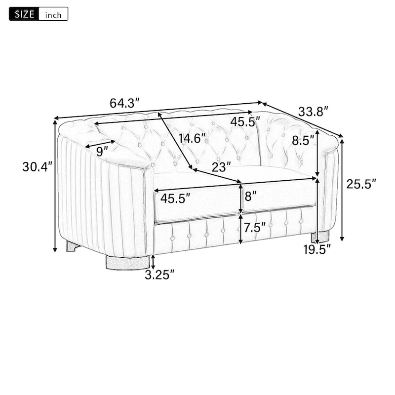64.3 Velvet Upholstered Loveseat Sofa,Modern Loveseat Sofa with Thick Removable Seat Cushion,2-Person Loveseat Sofa Couch