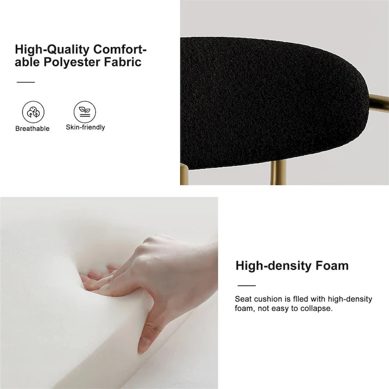 Elegant Fabric Seating: The dining chair set complements the table with its fabric upholstery and metal chair legs, creating a cohesive and stylish ensemble that enhances the overall dining experience.