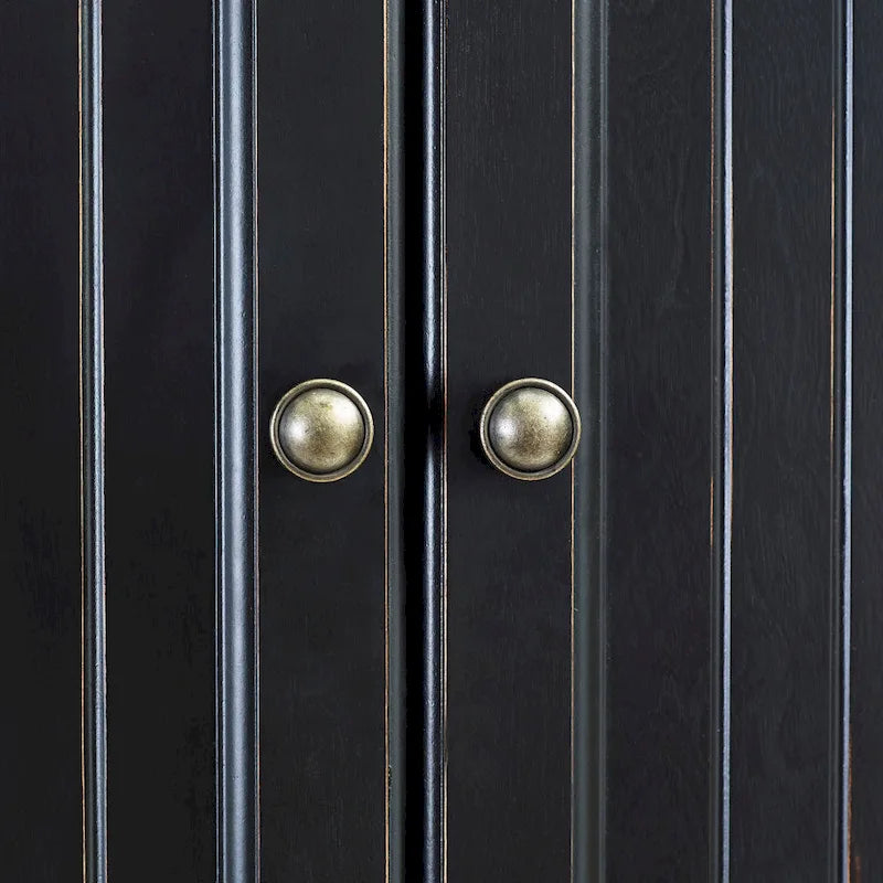 Bring the charm of a relaxed coastal home to your kitchen with the Seaside Kitchen Pantry in Distressed Black Finish by Crosley. Made of solid hardwood and veneers, the weathered surface gives a casual touch to the elegant design that complements any dcor. The pantry features two spacious cabinets with magnetic closure doors and adjustable shelving, as well as a deep drawer with smooth gliding. The genuine metal hardware and slatted details complete the look of this functional and stylish pantry.