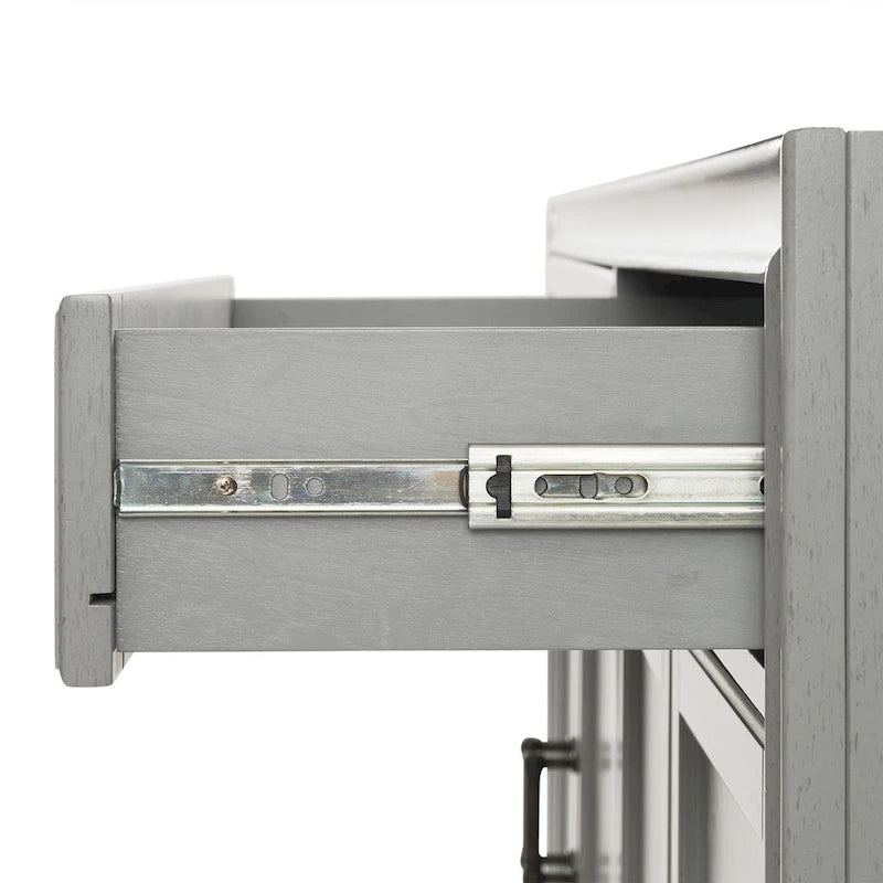 - Each pantry cabinet has a full-extension storage drawer on ball-bearing glides with a 15lb weight limit