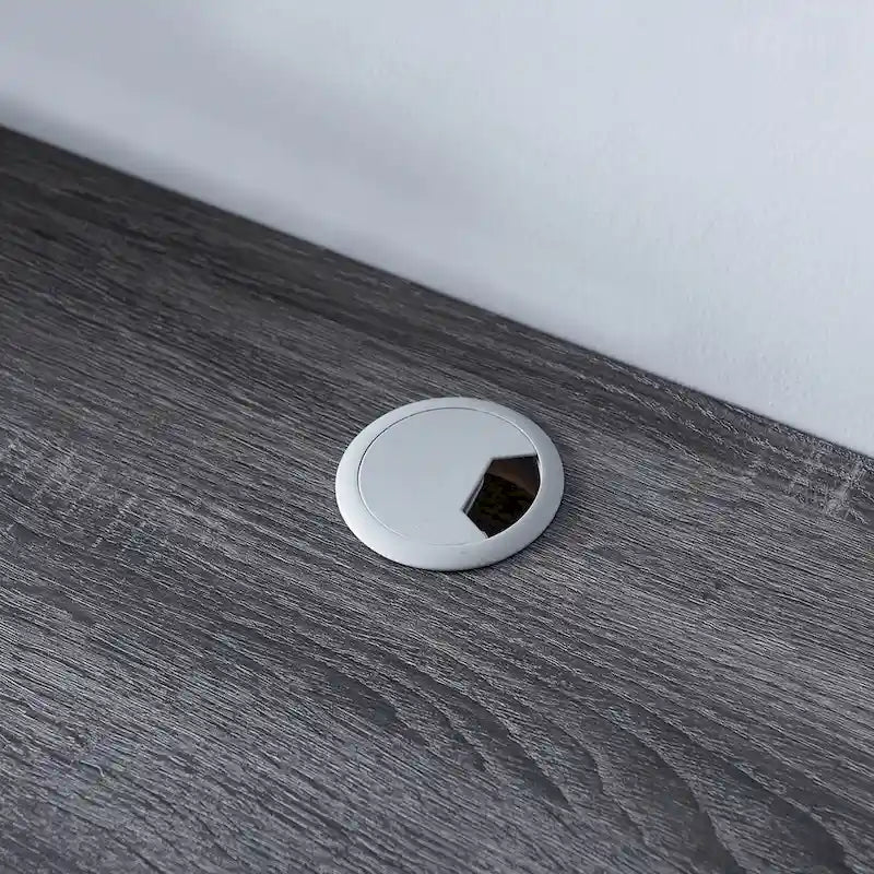 - Easy wire cord management behind shelves