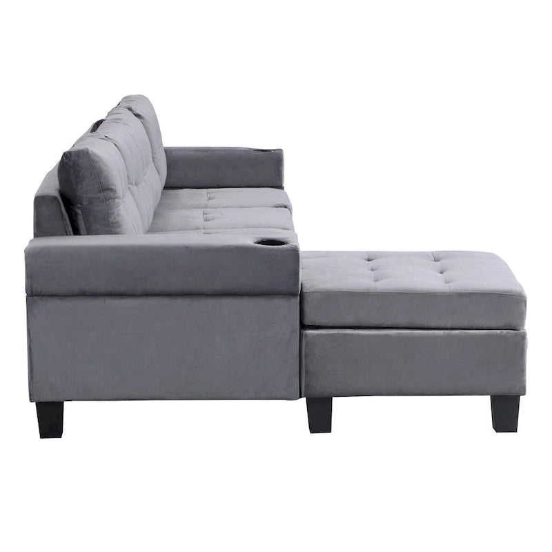 - Sofa with Left Hand storage Chaise and two cup holders (Gray)