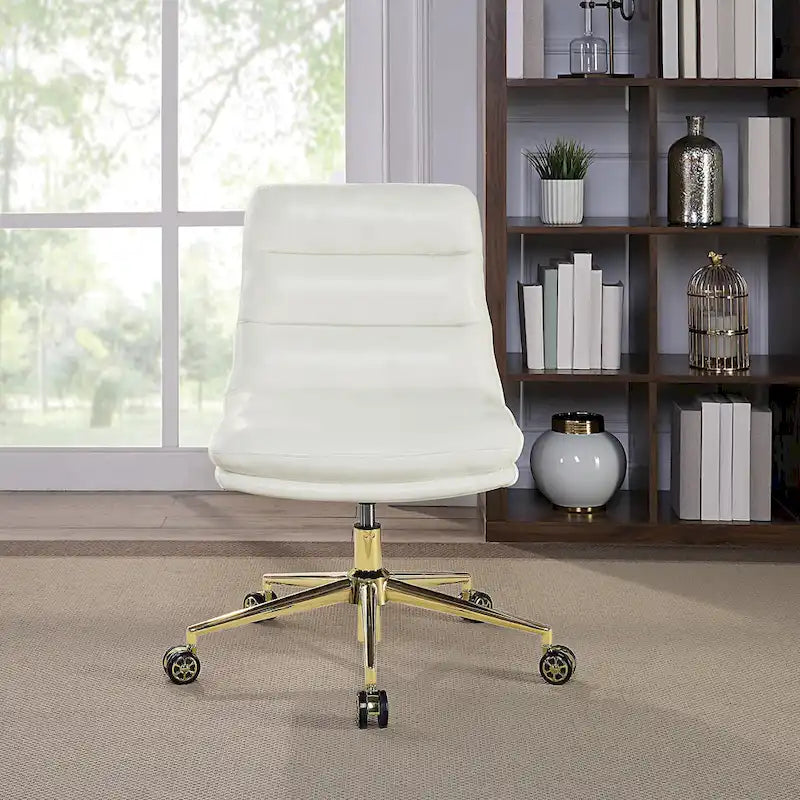 Sit down and get to work in style with this chic modern office chair. This armless chair is upholstered in faux leather with thick padding for lasting comfort. Choose from a variety of upholstery colors to best match your aesthetic.