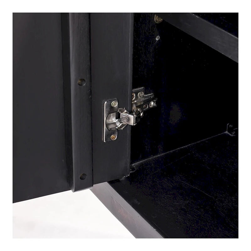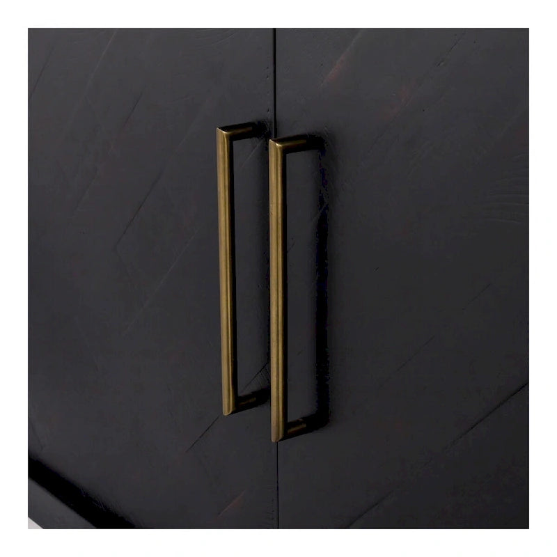 Rustic wood finished with a glossy ebony stain gives this sideboard its aesthetic cool. This buffet also boasts plenty of storage space, making it an absolute showstopper.