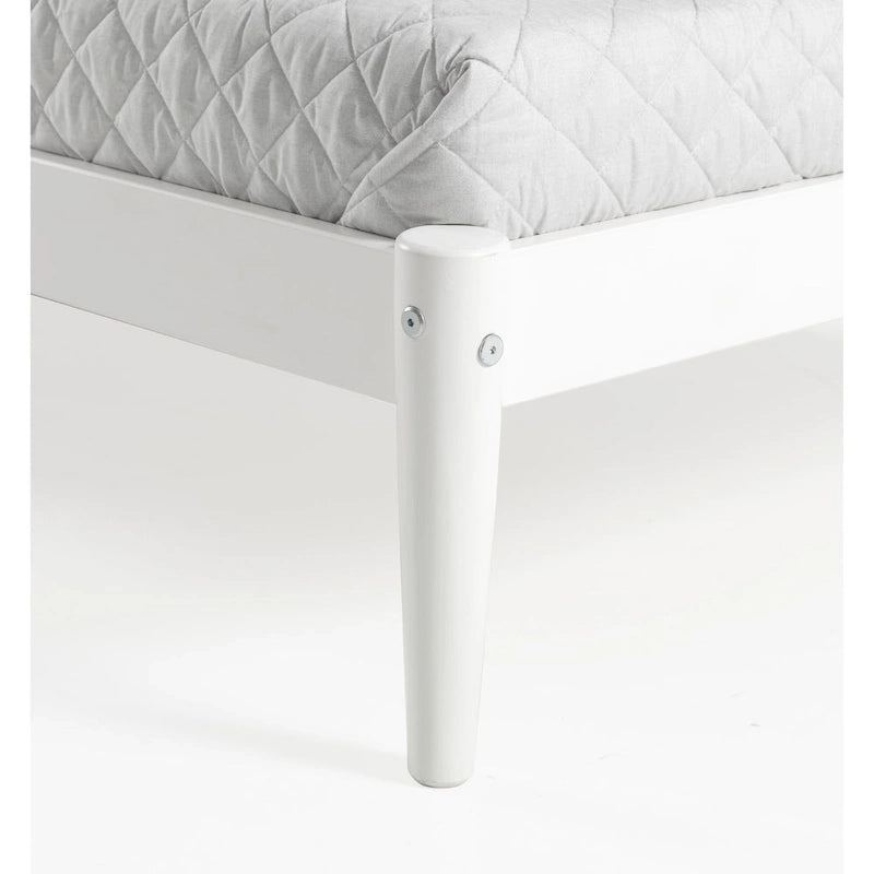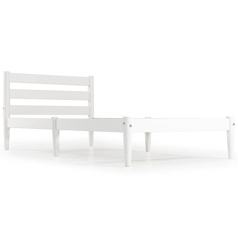 Experience a blast from the past with our Mid-Century Modern Twin Size Platform Bed. The retro-inspired bed features a charming slatted headboard and round tapered legs that add a touch of elegance to your bedroom. Our platform bed is made of 100% Solid Wood, guaranteeing strength and beauty all in one. A healthy option, the bed is finished with a water-based finish that protects the natural wood while keeping your room free from toxic fumes. With ten individual bed slats and two center legs, the mattress is superbly supported without the need for a box spring. Note: Mattress not included.