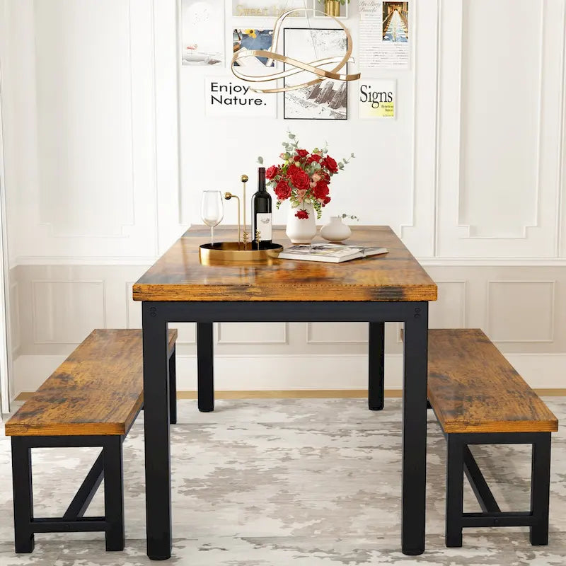 - Classic Design - Comes completed with a spacious table and 2 benches, this stylish dining set will add a modern touch to your home. All featuring natural wood texture sealed in a protective PVC coating, modern and stylish design make this 3 pieces dining room set easily blend into anywhere you want in your house and also for small spaces.