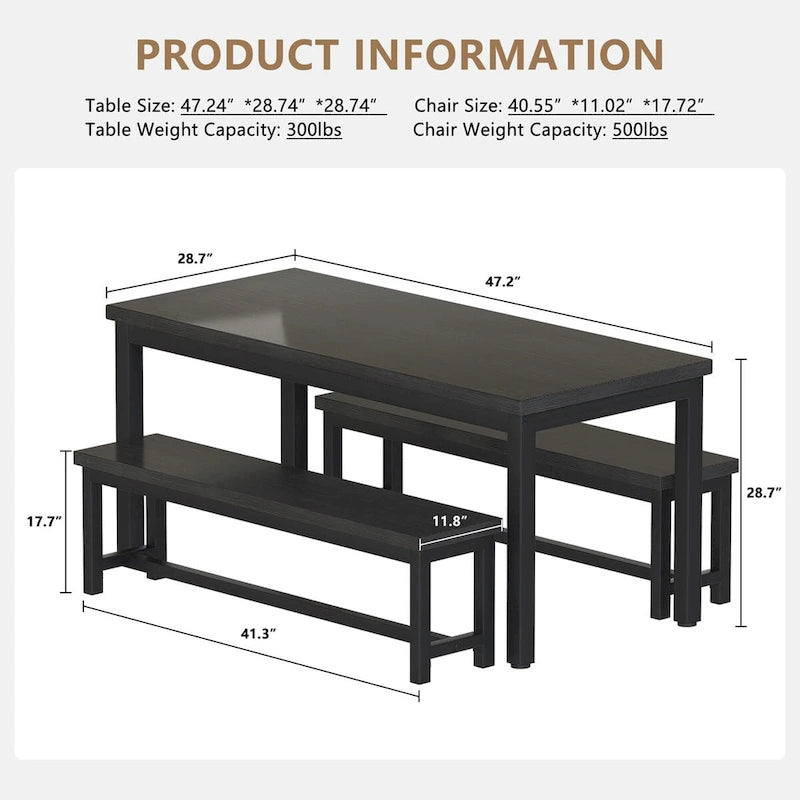- Space-Saving Design - Both two lightweight benches can be conveniently tucked under the standard height table for space-saving storage while not in use, a great solution for small spaces, small condos, small kitchens, studio apartments, and more.