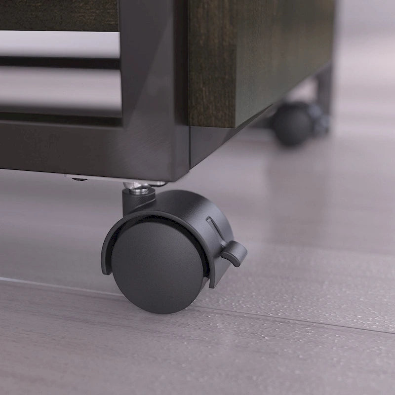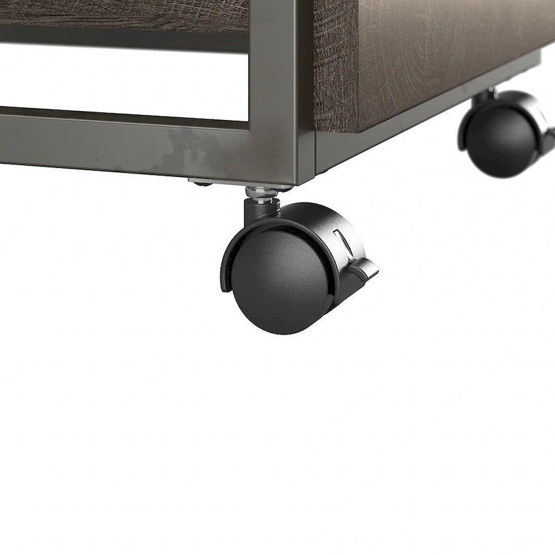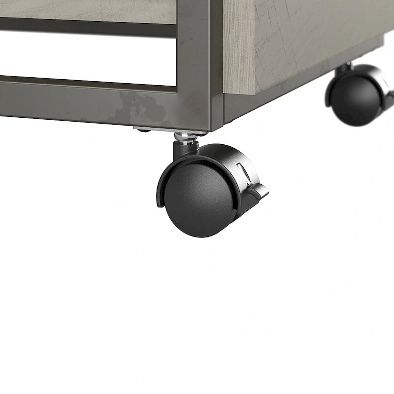 Stay organized and stylish with the Refinery 3-drawer Mobile File Cabinet. Its unique two-tone finish of grey and charred wood paired with a rugged steel frame give it an industrial and rustic vibe. The three drawers, including a full-extension file drawer, offer ample storage space for your important files and documents. With locking rolling castors, this cabinet can easily move and stay in place wherever you need it.