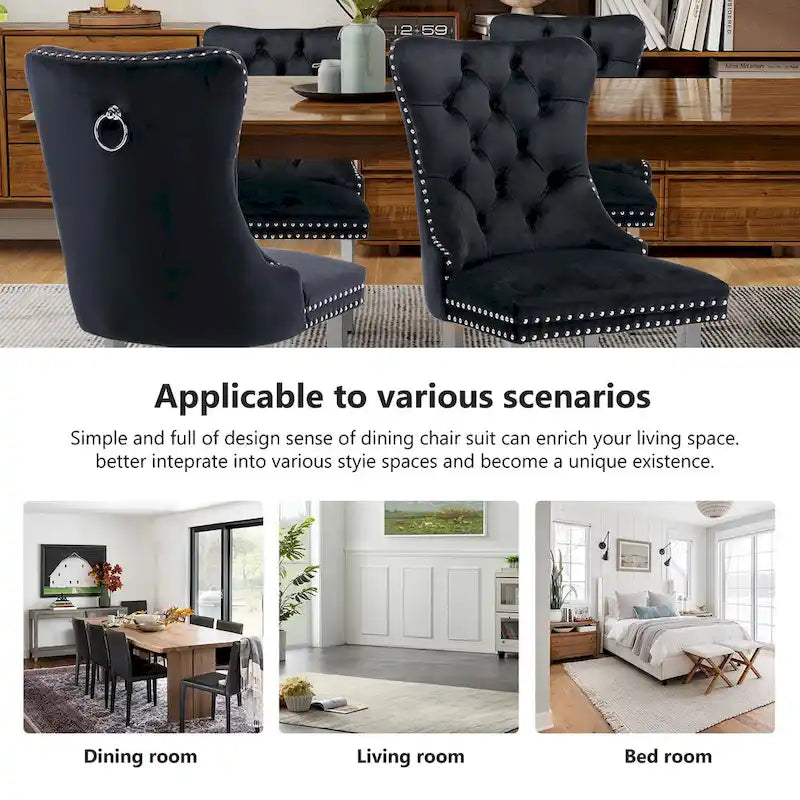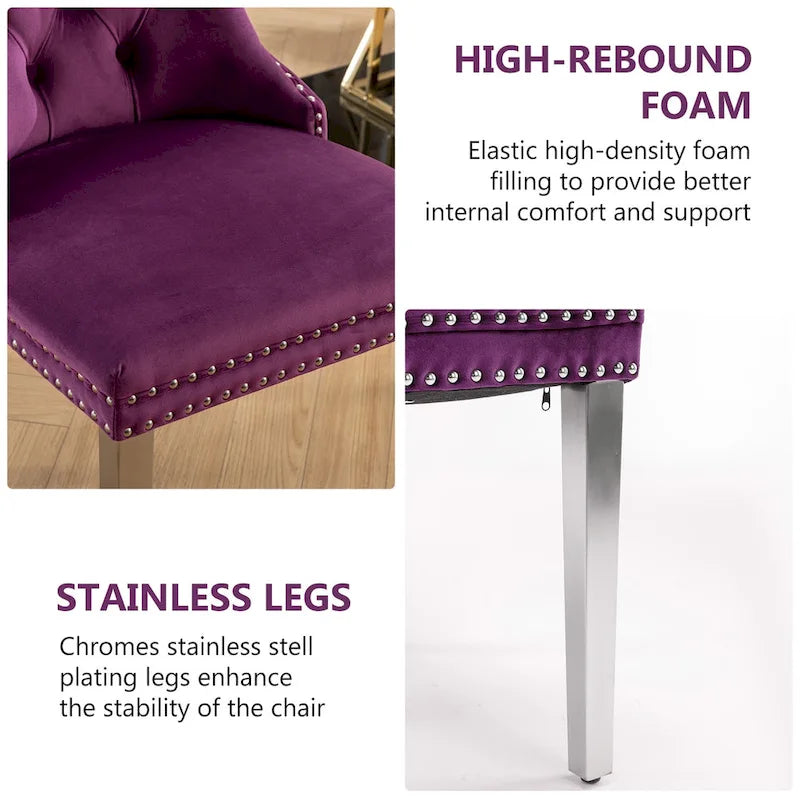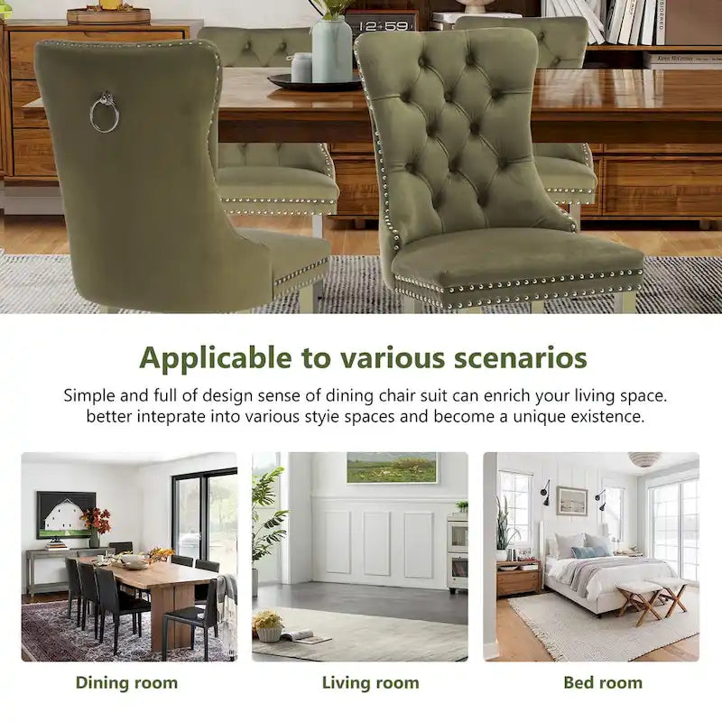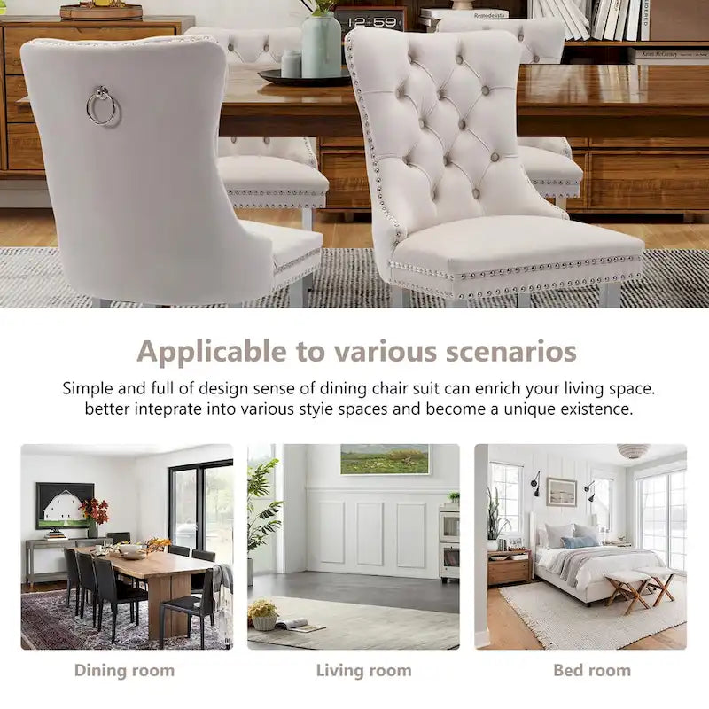 - Elegant Design & Sophisticated Details - Add a touch of luxury to your dining room with this set of 2 chic dining chairs. The delicate nailhead trim and tufted details create a sophisticated and refined look, while the metal ring on the back serves both as a decorative accent and a functional handle for easy chair movement. Perfect for elevating your dining areas style.