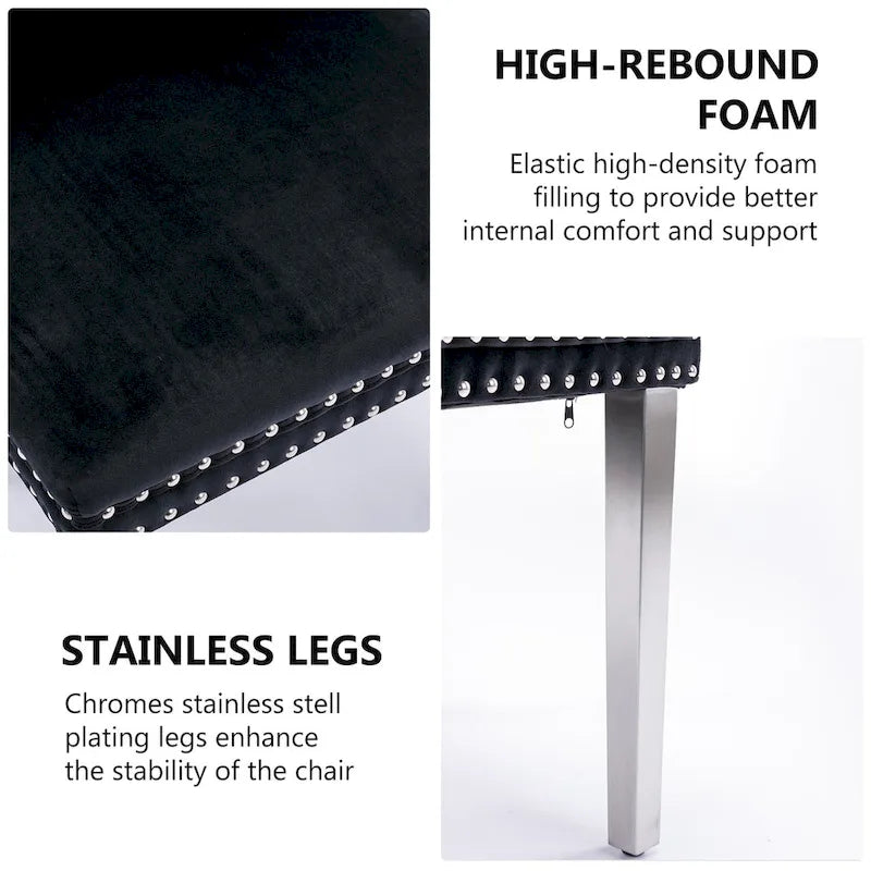 - Luxurious Velvet Fabric - Covered in high-quality velvet fabric, these chairs provide a skin-friendly and breathable seating experience. The fabrics thick texture feels soft to the touch, while the high-density sponge upholstery ensures a supportive and comfortable seat, making them ideal for dining, relaxing, or even as accent chairs.