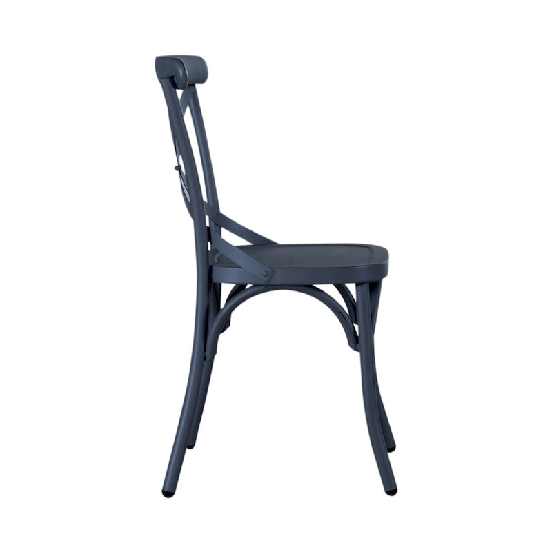 Indulge in classic vintage styling and industrial feel with the Vintage Series X back side chair. Crafted of metal, this piece features multiple finish options and heavy distressing. Distressed metal finishing accompanied by colors that can mix and match offer a unique designer look.