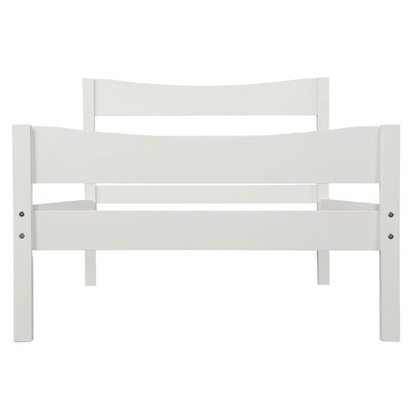Upgrade the look of your bedroom with this stylish and minimalistic Wood Platform Bed Mattress Foundation. With a headboard, lower footboard, and supportive wooden slats, this bed base offers not only structural stability but also a touch of elegance with its beautiful white finish. The solid wood construction ensures durability, while the under-bed clearance provides extra storage space for your personal belongings. Available in White, Walnut, and Espresso, this bed frame is the perfect addition to any bedroom.